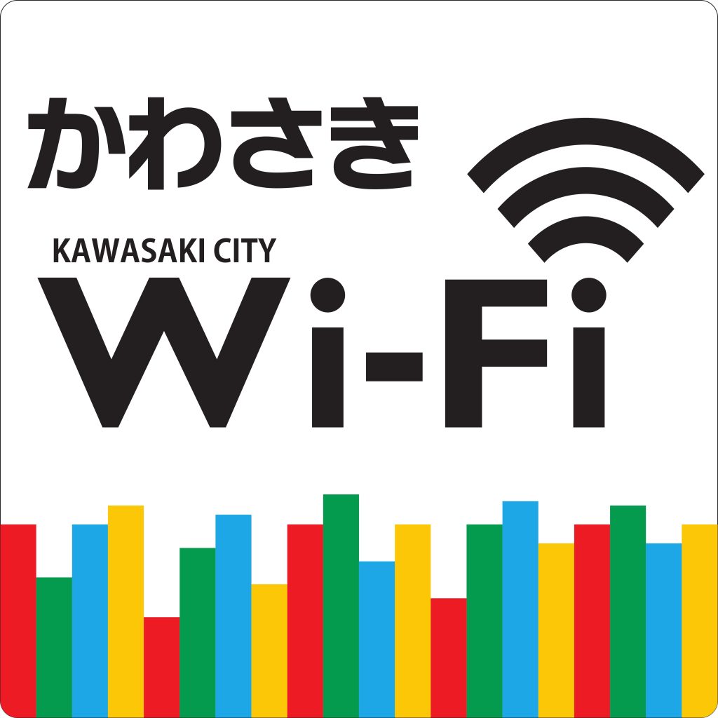 SSIDは、「Kawasaki-City-WiFi」。フレッツ光WiFiを使用している関係上、ユーザー登録が必要。その際メールを使用する。一時的に携帯回線の使用が必要となるので、注意。